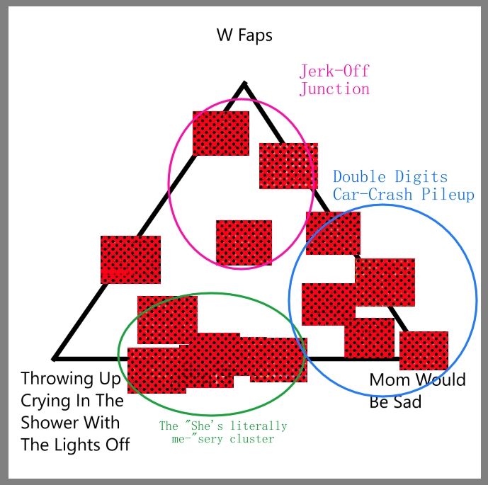 This version was nice for observing trends and groupings. The "She's Literally Me-"sery cluster was especially potent in making me want to blow a hole through my skull while feeling incredibly seen AND heard AND loved.